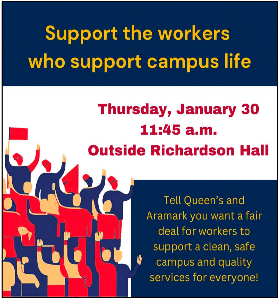 Together, we can pressure Queen’s and Aramark* to bargain in good faith to address the impact of the cost-of-living crisis before the February 3 strike deadline.
